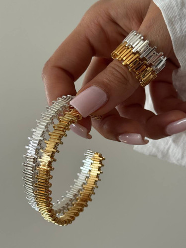 بنگل مینیمال درشت حلقه سه حالته طلایی