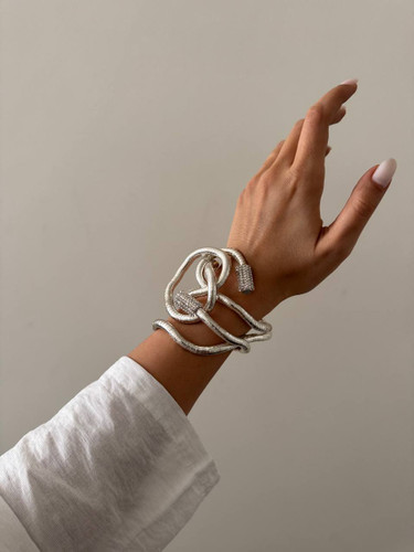 بنگل مدل گره با آبکاری نقره و فری سایز