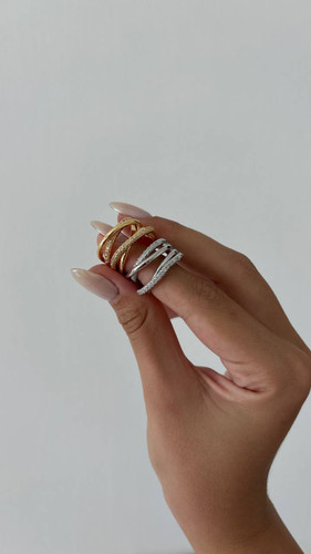 انگشتر طرح جواهر چند لاین با نگین های مخراجکاری شده