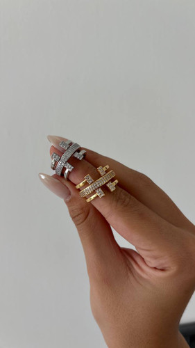 انگشتر دو لاین دو انگشتی فری سایز با آبکاری قوی